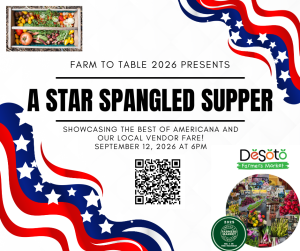 The DeSoto Farmers’ Market presents our premiere fundraiser of the year on September 12, 2026 at 6pm! "A Star-Spangled Supper" ...